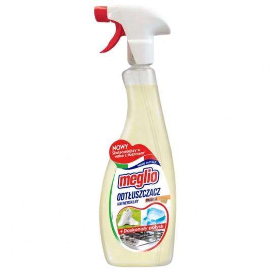 - Meglio Spray Marsylia to wyjątkowy odtłuszczacz, który łączy siłę działania profesjonalnego środka czyszczącego z delikatnością mydła marsylskiego - Przeznaczony do skutecznego usuwania tłuszczu, plam i brudu z różnych powierzchni – zarówno twardych, jak i tekstylnych – jest niezastąpionym produktem w każdym domu, biurze czy warsztacie - Dzięki zawartości mydła marsylskiego Meglio Marsylia nie tylko doskonale czyści, ale również pozostawia delikatny, przyjemny zapach, który długo utrzymuje się w pomieszczeniu - To idealne rozwiązanie dla osób, które cenią sobie skuteczność działania i subtelność zapachu - Pojemność 750 ml