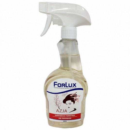 - Forlux AZJA, jest gotowym do użycia odświeżaczem powietrza na bazie olejków pozyskanych z cynamonu, wanilii, pomarańczy i piżma - Specjalnie dobrane kompozycje zapachowe tworzą niepowtarzalny zmysłowy zapach o długotrwałym kilkunastogodzinnym działaniu - Odświeżacze powietrza Forlux są gotowymi do użycia preparatami posiadającymi na bazie naturalnych olejków eterycznych - Pojemność 500 ml