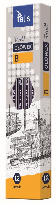- Ołówek drewniany, heksagonalny kształt- Opakowanie: pudełko 12 sztuk- Do wyboru twardość ołówka: B