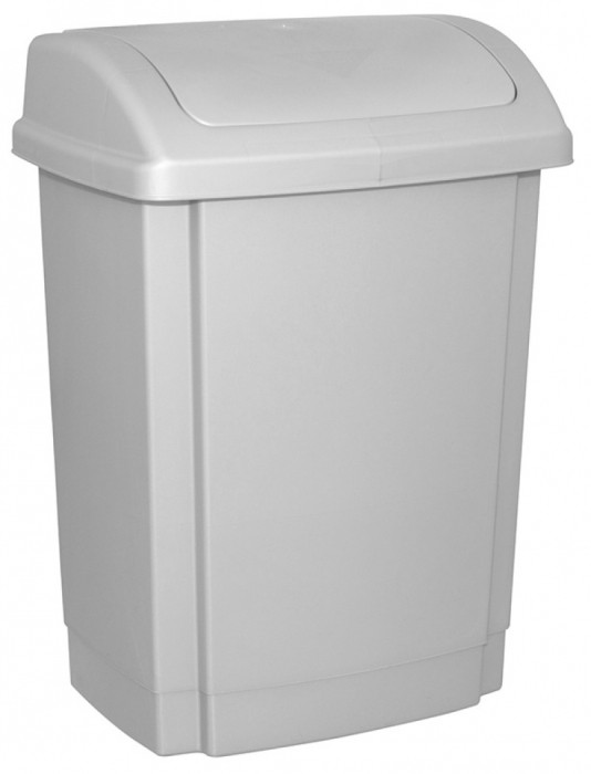 - Praktyczny kosz na śmieci, zapewniający czystość w miejscu, w którym będzie używany - Wykonany z tworzywa sztucznego - Zbiornik jest otwierany ręcznie przy pomocy obrotowej pokrywy, jego konstrukcja pozostawia zawartość kosza stale zamkniętą i niewidoczną - Pojemność 15L