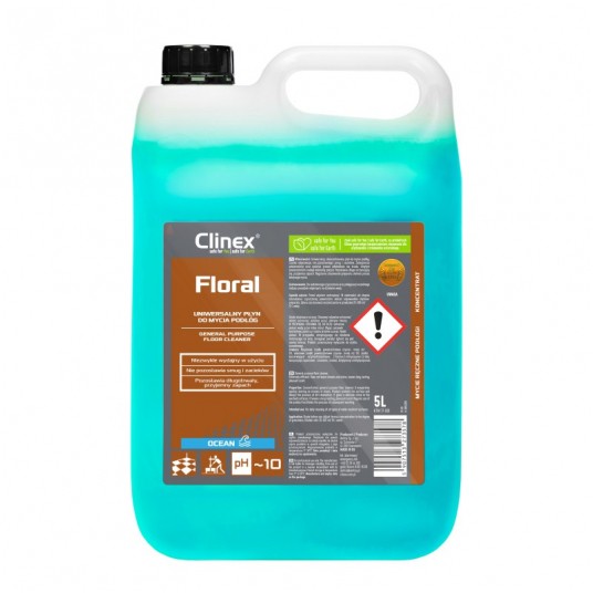 - Clinex Floral to uniwersalny płyn do codziennego mycia różnych powierzchni, m.in.: drewno lakierowane, glazura, granit, kamień betonowy, kauczuk, klinkier i terakota, linoleum, marmur, PCV, piaskowiec, płytki ceramiczne, posadzka laminowana, podłogi żywiczne i sportowe, stal nierdzewna