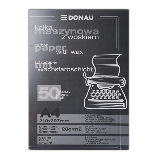 - Kalka maszynowa A4, 50 arkuszy- Wykonana z materiału gwarantującego wielokrotne wykorzystanie arkuszy- Gramatura warstwy kopiującej 10g/m2
