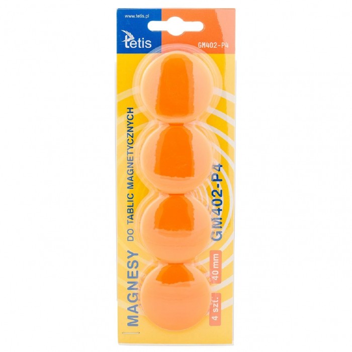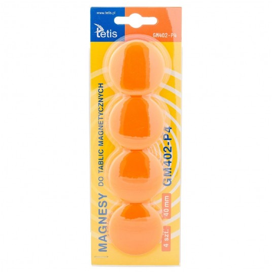 Magnesy Tetis gładkie pomarańczowe 40mm 4 sztuki