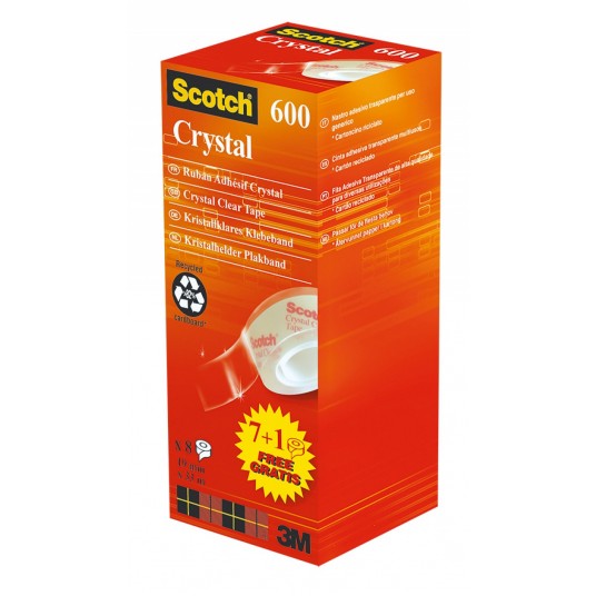 Taśma biurowa Scotch® crystal (6-1933r8), 19mm, 33m, 7 sztuk, 1 rolka gratis