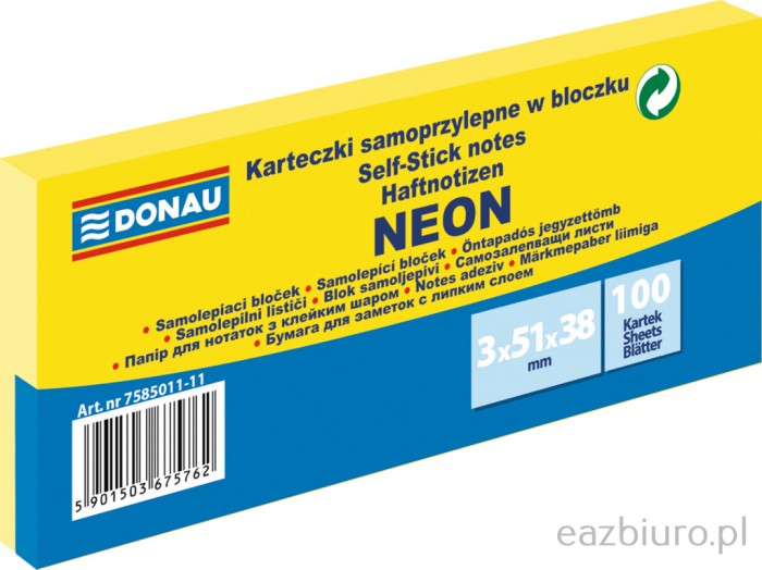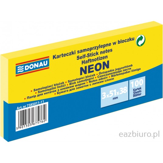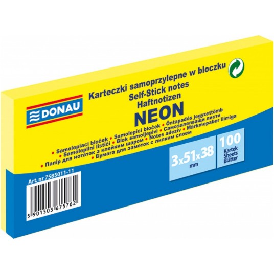 Bloczek samoprzylepny Donau 51x38 mm neon żółty 3x100 karteczek