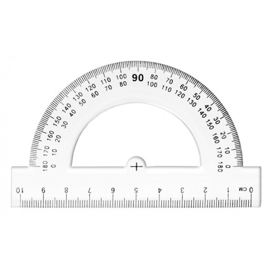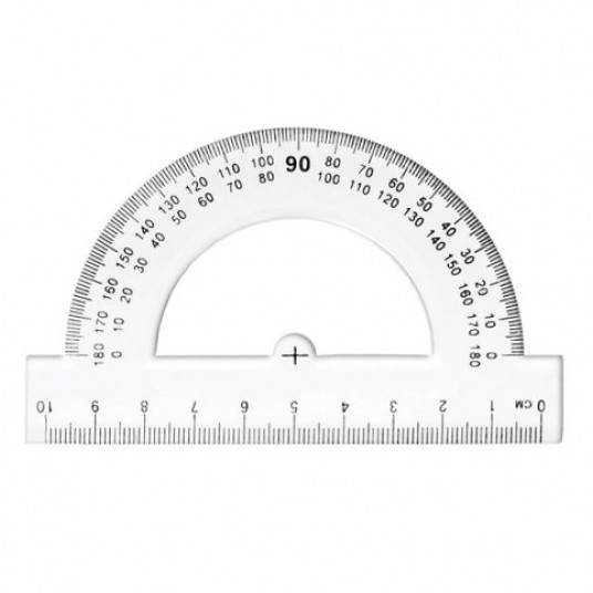 - Kątomierz wykonany z przeźroczystego, trwałego tworzywa