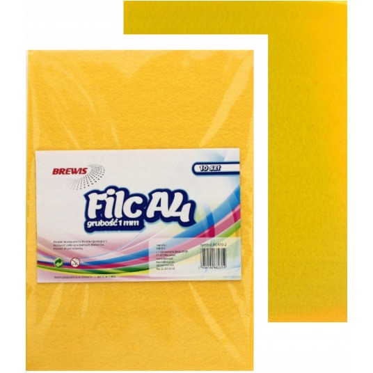 Filc dekoracyjny A4 1mm żółty 10 sztuk