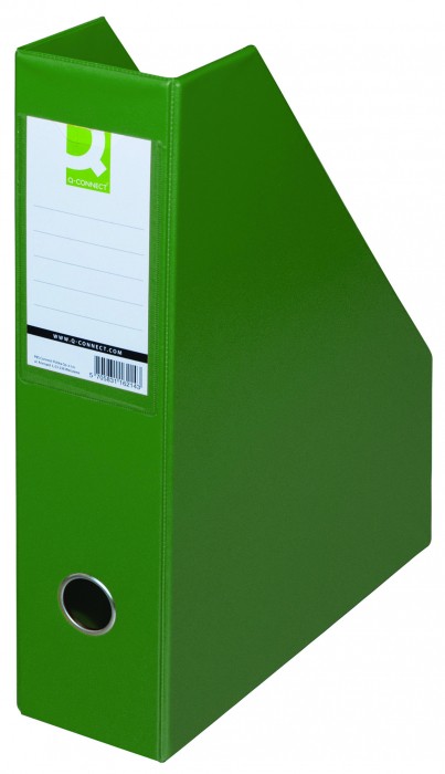 - wykonany z tektury o grubości ok. 2mm pokryte folią PVC - pojemność: ok. 750 kartek o gramaturze 80gsm - posiadają dwie kieszonki opisowe, co umożliwia uniwersalne wykorzystanie pojemnika - składany - bardzo prosty w montażu, zabezpieczony wewnętrznym rzepem - wymiary: 76x317x250mm - kolor zielony