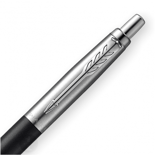 Mechanizm wysuwania wkładu przyciskowy. Długopis większy od standardowego Jottera o ok 7 procent. Skuwka wykonana ze szczotkowanej stali. Korpus w kolorze czarnym, matowym.