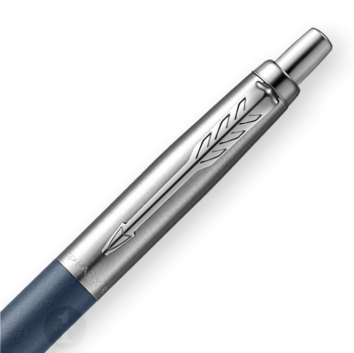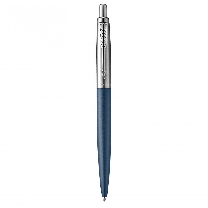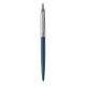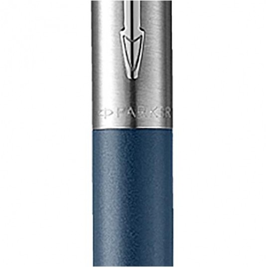Mechanizm wysuwania wkładu przyciskowy. Długopis większy odstandardowego Jottera o ok 7 procent. Skuwka wykonana ze szczotkowanej stali.Korpus w kolorze niebieskim, matowym.