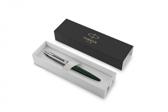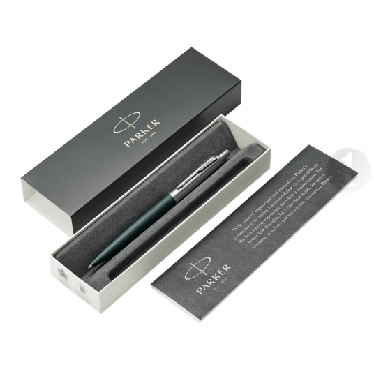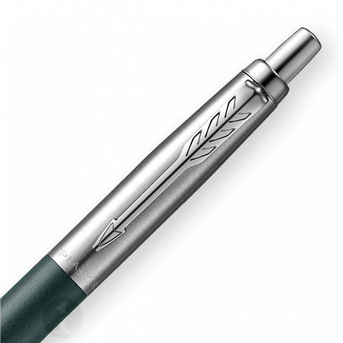 Mechanizm wysuwania wkładu przyciskowy. Długopis większy odstandardowego Jottera o ok 7 procent. Skuwka wykonana ze szczotkowanej stali.Korpus w kolorze zielonym, matowym.