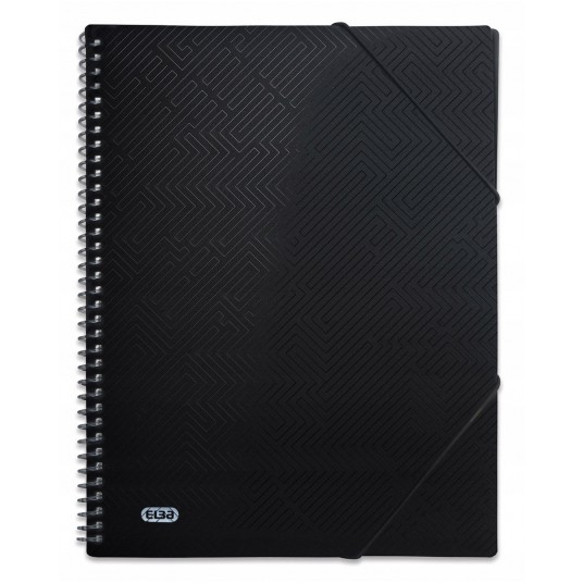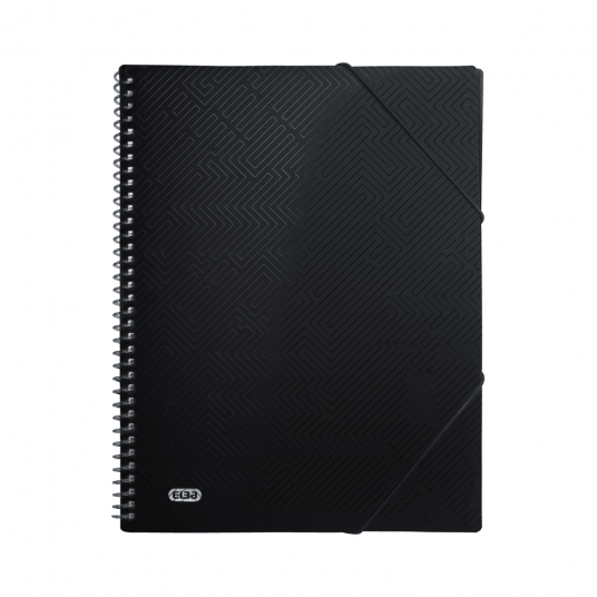 - Wykonane z polipropylenu o grubości 450 mic. - Na spirali, zamykane na gumkę w kolorze albumu - 20 lub 40 kieszeni o grubości 50 mic. - Format: A4 - Czarny nieprzezroczysty