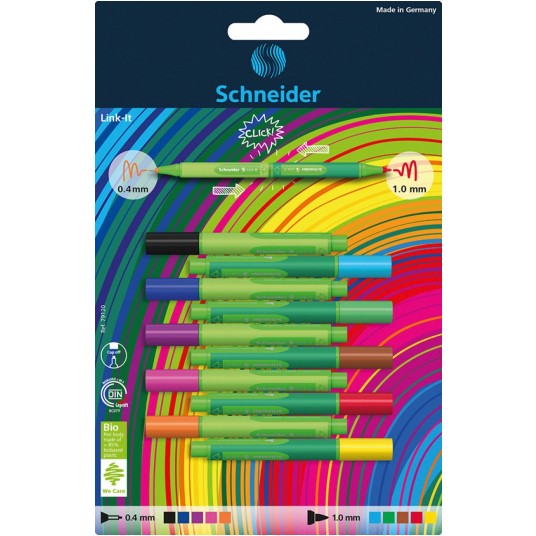 - pierwszy modułowy system pozwalający swobodnie łączyć dwie piszące połówki - swoboda łączenia, przekłądania, dobierania kolorów i grubości - idealny do pisania, kolorowania, zaznaczania - obudowa wykonana w 88% z bioplastiku - ergonomiczny, trójkątny kształt pozwala na naturalny uchwyt - gumowana obudowa gwarantuje komfort pisania - elementy obudowy w kolorze tuszu - skuwka wentylowana, idealnie przylegająca do nasady - kod kreskowy umieszczony na każdym produkcie - grubość linii pisania: 5 x 0,4 mm + 5 x 1,0 mm - mix kolorów
