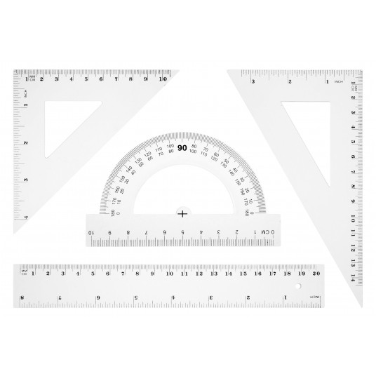 Komplet zawiera 2 ekierki, linijkę or kątomierz.