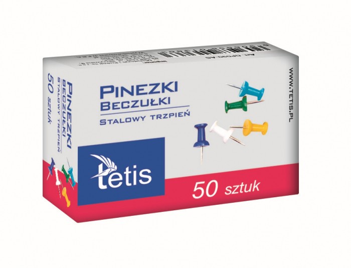 - Pinezki posiadają plastikowe, kolorowe główki.