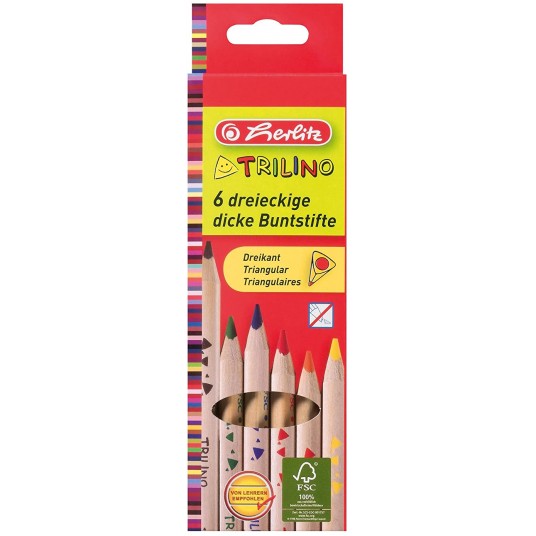 Kredki 6 kolorów Herlitz trójkątne nielakierowane