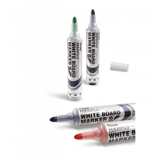 - Marker MAXIFLO do białych i ceramicznych tablic. - Płynny tusz dozowany w razie konieczności nawilżenia końcówki za pomocą tłoczka (zamiast tradycyjnego sączka). - Marker pisze wyrazistą linią aż do ostatniej kropli tuszu. - Kilkakrotnie dłuższa linii pisania niż w standardowych markerach z sączkiem - 1100 m. - Nie zawiera substancji trujących ksylenu, toluenu ani polichlorku winylu. - Nadaje się również na papier, plastik, karton. - Wykonany w 50% z materiałów przetworzonych.