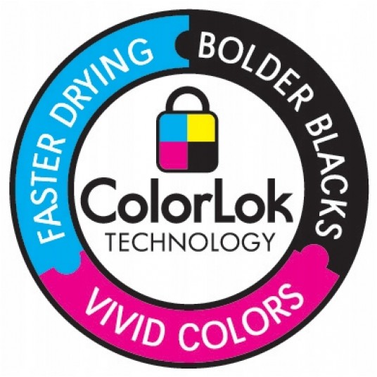 - Technologia ColorLok gwarantuje błyskawiczne wysychanie druku or pogłębione odcienie czerni