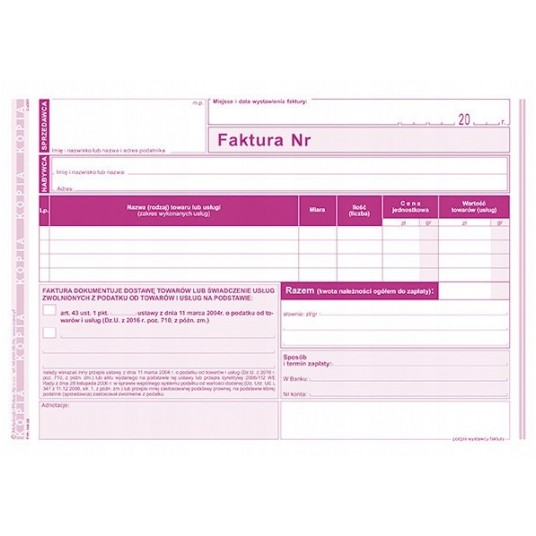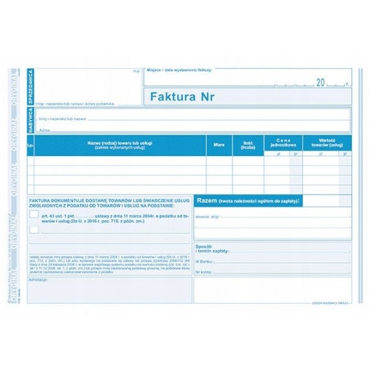 - Druk: jednostronny (oryginał + kopia)