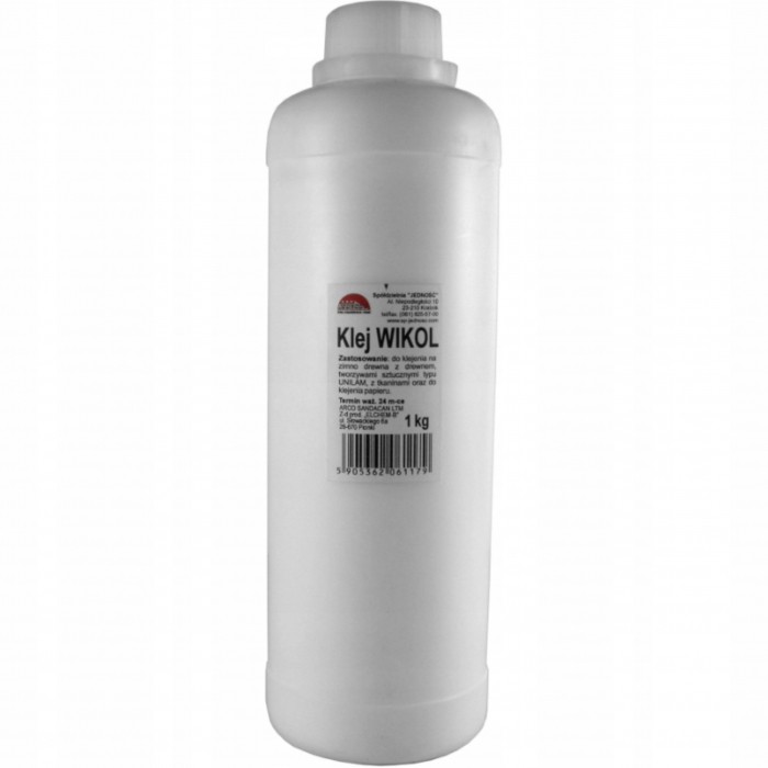 - Wikol ma początkowo barwę białą, natomiast w momencie wysychania robi się bezbarwny - Nadaje się tak samo do drewna jak i różnego rodzaju papieru i tektury - Dobrze radzi sobie zarówno z drewnem miękkim jak i twardym - Waga 1kg