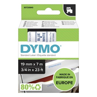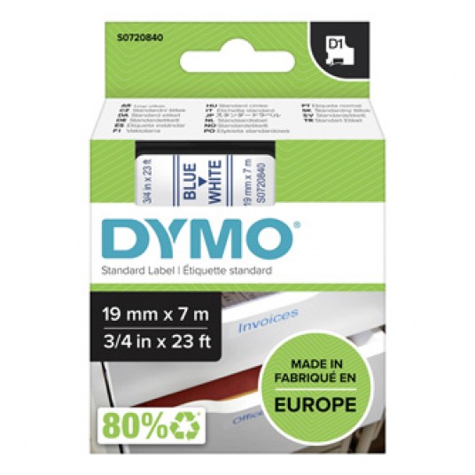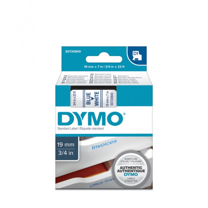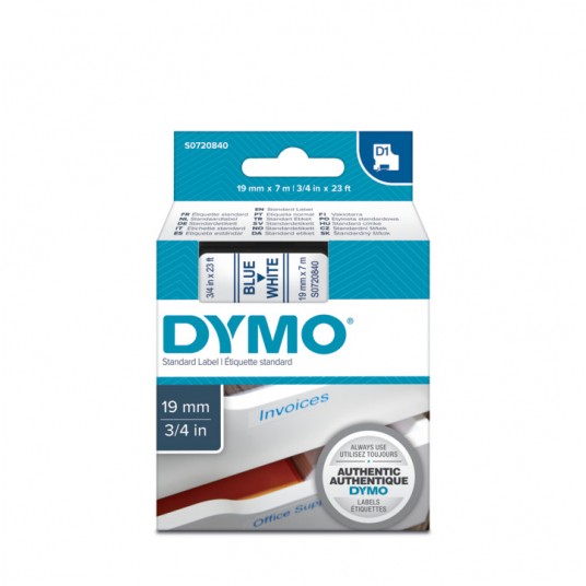 - Taśma Dymo D1 19 mm x 7 m niebieski/biały - Numer katalogowy: S0720840 - Symbol producenta: 45804 - Opis: Taśma D1 19 mm x 7 m niebieski/biały do opisu płaskich, gładkich, równych powierzchni - Rozmiar: 19 mm x 7 m - Kolory: niebieski nadruk na białej taśmie - Rodzaj powierzchni: Plastik, papier, szkło, metal, drewno - Nadruk: termosublimacyjny - Wodoodporność: Tak - Odporność na promienie UV - Odporność na temperaturę: -18 st.C do 90 st.C