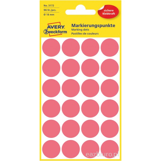 - TRWAŁE KOLOROWE KÓŁKA DO ZAZNACZANIA - Kolorowe, okrągłe etykiety w małych rozmiarach, do zaznaczania i organizowania - Dostępne w różnych kolorach i rozmiarach - Idealne do komunikowania promocji, oznaczania produktów, opakowań czy broszur, a także do podkreślania istotnych informacji (na mapach, w kalendarzach oraz harmonogramach) - Ilość etykiet/opakowanie: 96