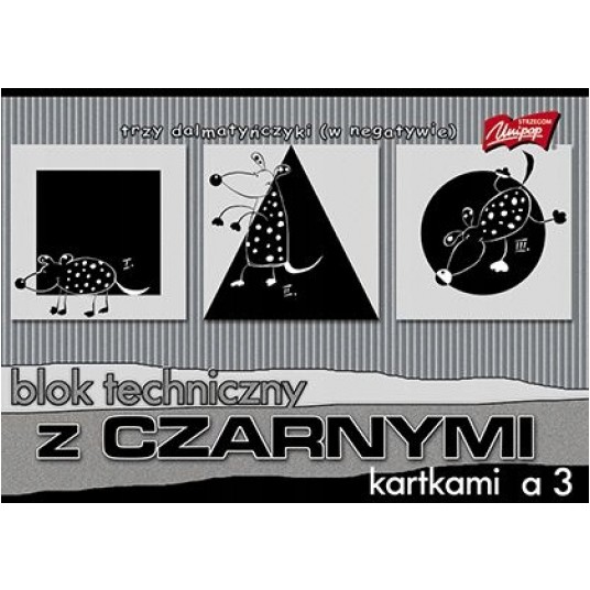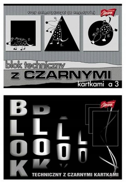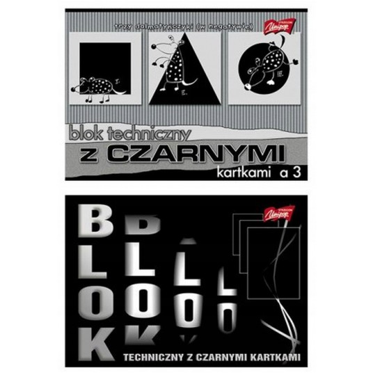 Blok zawiera 10 kartek o gramaturze 180 g/m2. Kartki barwione w masie na kolor czarny. Okładka kredowa o gramaturze 115 g/m2 wykorzystuje najnowsze motywy wzornicze UNIPAP. Dla podkreślenia, jakości wykończenia okładka jest dodatkowo nabłyszczana. Całość usztywniona tekturowym podkładem.