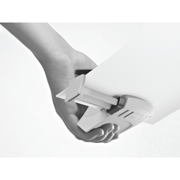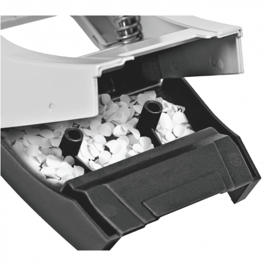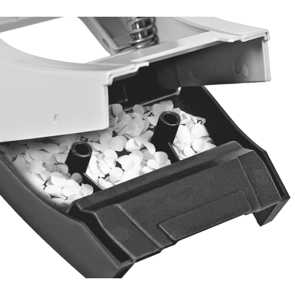 - Do codziennego użytku w biurze - Podstawa wykonana jest z metalu, a uchwyt z plastiku, dodatkowo wzmocniony opatentowaną metalową obręczą - Antypoślizgowa plastikowa podstawa zabezpiecza przed rysowaniem mebli - Opatentowany pojemnik na ścinki, który nie spada podczas opróżniania