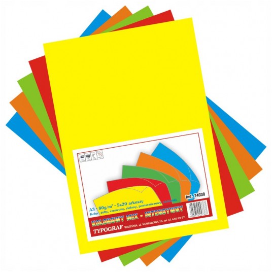 - Mix kolorów intensywnych: żółty, czerwony, zielony, niebieski, pomarańczowy