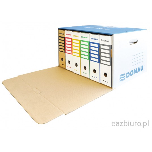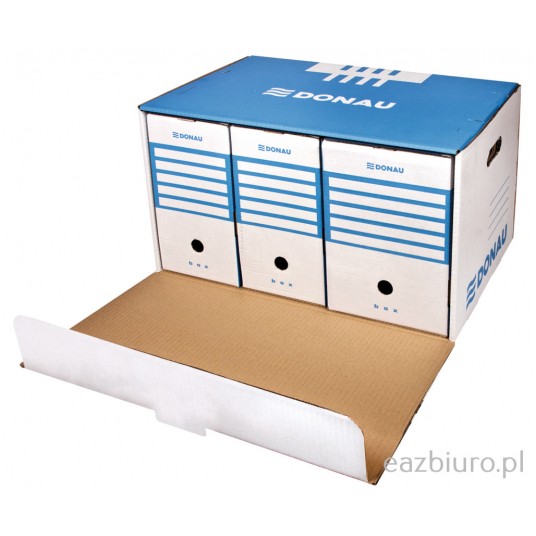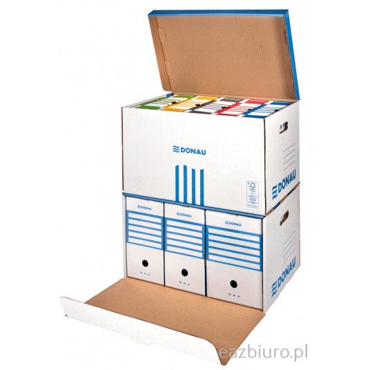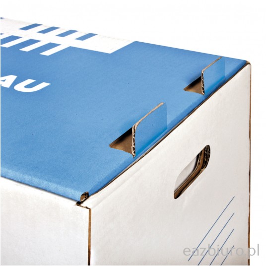 - Wykonane z trójwarstwowej tektury falistej o gramaturze 450gsm - Produkt bezkwasowy, wskaźnik pH ok. 7,5 - Typ fali: C - Mieści np. 6 pudełek 80mm lub 5 pudełek 100mm lub 4 pudełka 120mm lub 2 pudełka 155mm+1 pudełko 200mm lub 2 pudełka 200mm + 1 pudełko 100mm - Wzmocnione dno i uchwyty pozwalają przenosić nawet najbardziej dociążone segregatorami/pojemnikami pudło - Zintegrowana klapa otwierana z przodu umożliwia dostęp do dokumentów bez konieczności zdejmowania - Kompatybilne z pudłem wzmocnionym otwieranym od góry - specjalne otwory w dnie i wypustki w klapie ułatwiają składowanie pudeł składane, proste w montażu - Posiada certyfikat FSC, który gwarantuje, że papier pochodzi z ekologicznie zarządzanych obszarów leśnych - Udźwig do 12kg - Wymiary zewnętrzne: 360x555x315mm - Kolor niebieski