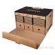 - Wykonane z trójwarstwowej tektury falistej o gramaturze 450gsm - Produkt bezkwasowy, wskaźnik pH ok. 7,5 - Typ fali: C - Mieści np. 6 pudełek 80mm lub 5 pudełek 100mm lub 4 pudełka 120mm lub 2 pudełka 155mm+1 pudełko 200mm lub 2 pudełka 200mm + 1 pudełko 100mm - Wzmocnione dno i uchwyty pozwalają przenosić nawet najbardziej dociążone segregatorami/pojemnikami pudło - Zintegrowana klapa otwierana z przodu umożliwia dostęp do dokumentów bez konieczności zdejmowania - Kompatybilne z pudłem wzmocnionym otwieranym od góry - specjalne otwory w dnie i wypustki w klapie ułatwiają składowanie pudeł składane, proste w montażu - Posiada certyfikat FSC, który gwarantuje, że papier pochodzi z ekologicznie zarządzanych obszarów leśnych - Udźwig do 12kg - Wymiary zewnętrzne: 360x555x315mm - Kolor brązowy