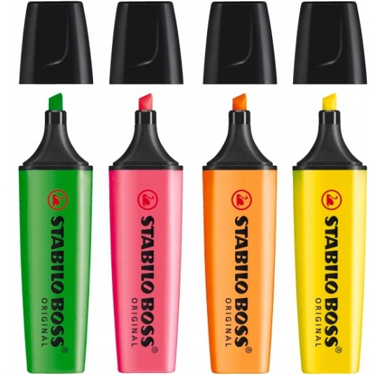 - wszystkie czarne elementy zakreślacza STABILO BOSS ORIGINAL wykonane są w 100% z surowców wtórnych