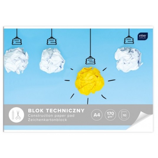- Bloki techniczne białe - Format: A4 lub A3 - Ilość kartek: 10 - Do wyboru dwie wersje jakościowe bloków białych - wykonane z papieru o gramaturze 150 g/m2- okładka karton lub kreda - Atrakcyjna grafika okładek - zmiksowane wzory w zgrzewkach