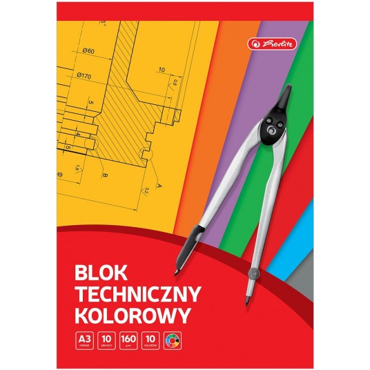 - Blok liczy 10 kolorowych kartek w 10 kolorach (żółty, pomarańczowy, czerwony, fioletowy, zielony, ciemnozielony, błękitny, niebieski, szary, czarny).