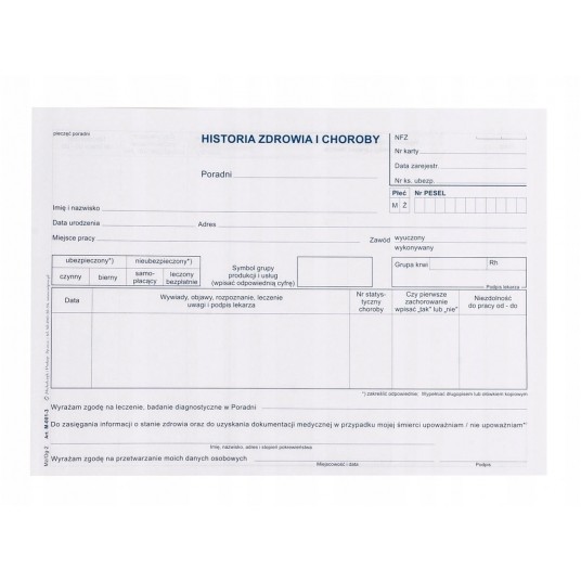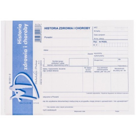- Symbol: M-001-3- Oprawa: bloczek 50 stron- Rodzaj papieru:offsetowy- Format: 2 x A5- Zastosowanie: druki medyczne- Producent: Michalczyk i Prokop