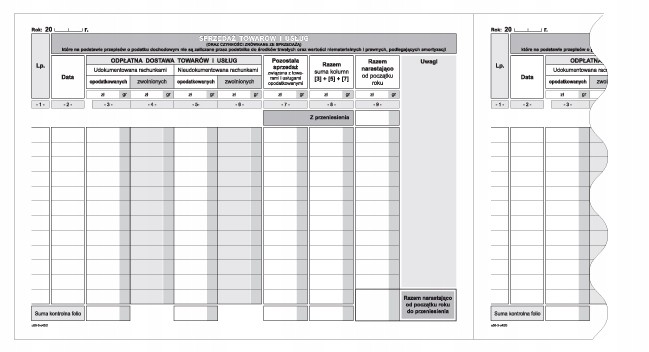 - Rodzaj papieru: offsetowy- Zastosowanie: podatnicy objęci ustawą o podatku od towarów i usług- Oprawa: album 32 strony- Druk: dwustronny