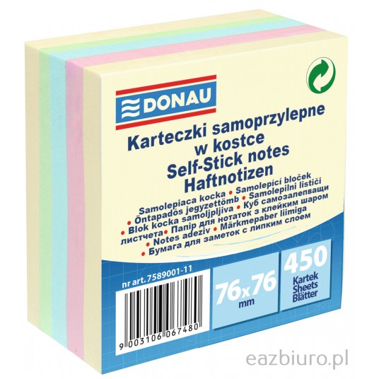 - Substancja klejąca usuwalna za pomocą wody - Karteczki w delikatnych, pastelowych kolorach - Idealny do pozostawienia wiadomości zarówno w biurze jak i domu - Możliwość przeklejania karteczek - Gramatura: 75 g/m2
