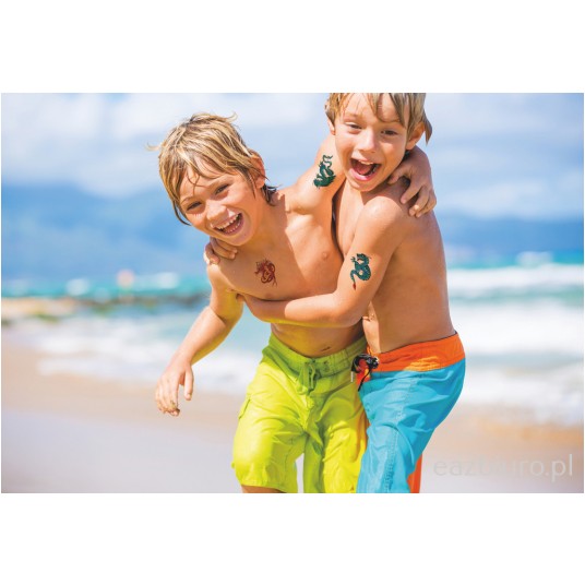 - Wodoodporne i bardzo łatwe w użyciu tatuaże - Do naklejania przy użyciu wody, nietrudne do usunięcia - Wśród tatuaży Z-Design można znaleźć wiele ciekawych i modnych wzorów zarówno dla dziewczynek, jak i dla chłopców - Spośród całego mnóstwa różnorodnych, kolorowych motywów każdy znajdzie coś dla siebie - Tatuaże idealnie sprawdzają się przede wszystkim w czasie letnich wakacji, gdy są źródłem i inspiracją do ciekawych zabaw - W opakowaniu: 8 sztuk