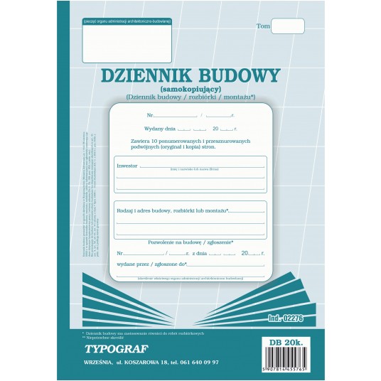 Druk dziennik budowy A4 20 kartek samokopiujący