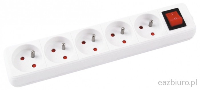 Przedłużacz 5 gniazd z uziemieniem i wyłącznikiem 5m biały