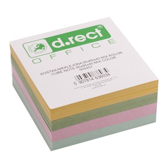 - Tradycyjne karteczki nieklejone w rozmiarze 85 x 85 mm, w miksie pastelowych kolorów, przeznaczone do sporządzania notatek oraz pozostawiania krótkich wiadomości i przypomnień - Znajdują zastosowanie w biurze, domu, a także szkole - Wysokość kostki 40 mm