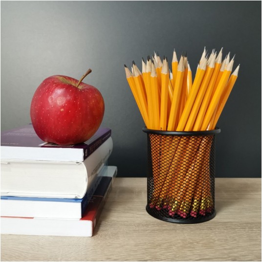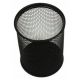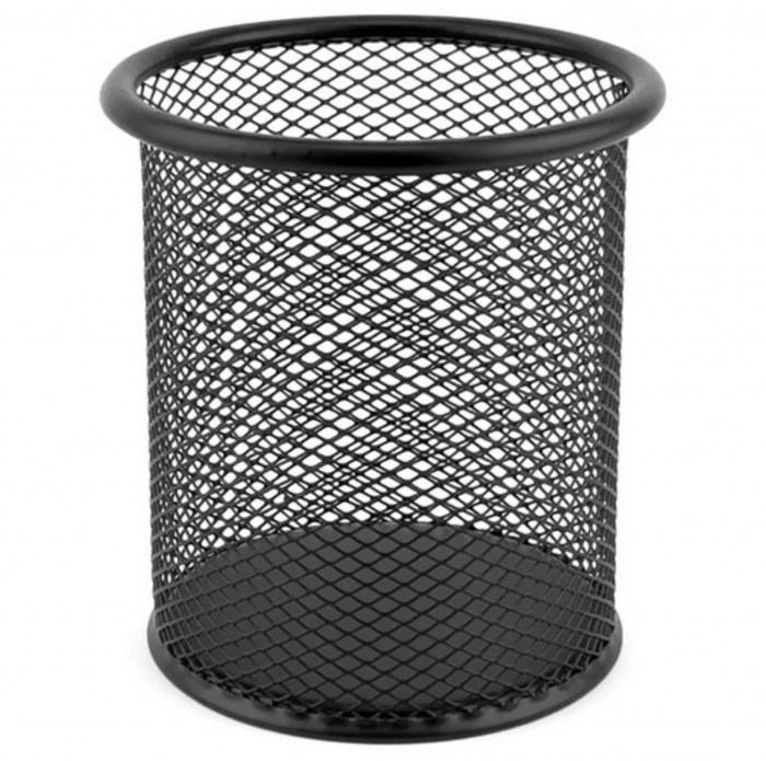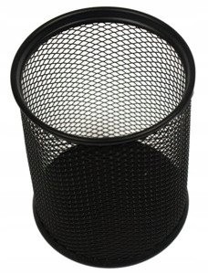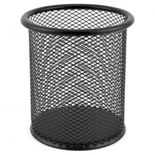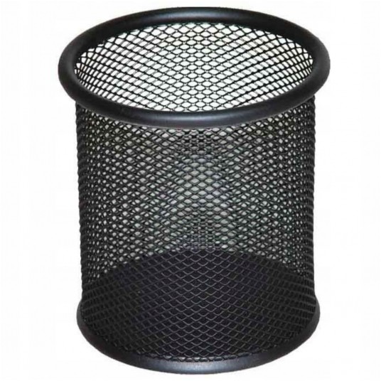 - Metalowy kubek na biurko służący do przechowywania artykułów piśmiennych. - Pomaga utrzymać porządek w miejscu pracy. - Na spodzie specjalne gumowe stopki zapobiegające zarysowaniu biurka. - W środku powłoka z gąbki zabezpieczająca wkładane artykuły przed uszkodzeniem. - Wykonany z metalowej siatki pokrytej czarnym lakierem. - Istnieje możliwość skompletowania całego zestawu biurowego, składającego się z kubka, przybornika, kosza, szufladek nabiurkowych, zszywacza i dziurkacza w jednolitej wersji kolorystycznej. - Wysokość: 98 mm - Średnica: 91 mm