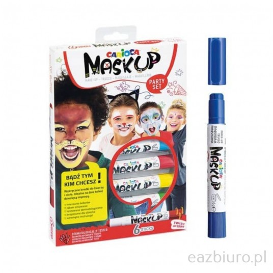 - Wykręcane kredki do twarzy i ciała - Łatwo się rozprowadzają - Nie brudzą rąk - Łatwo zmywalne ze skóry za pomocą wody z mydłem, spieralne z tkanin - Kolory łatwo mieszają się ze sobą - Bezpieczne dla skóry dziecka - Produkt testowany dermatologicznie - Idealne na (nie tylko) dziecięcą imprezę - Zestaw 6 intensywnych kolorów x 6 g