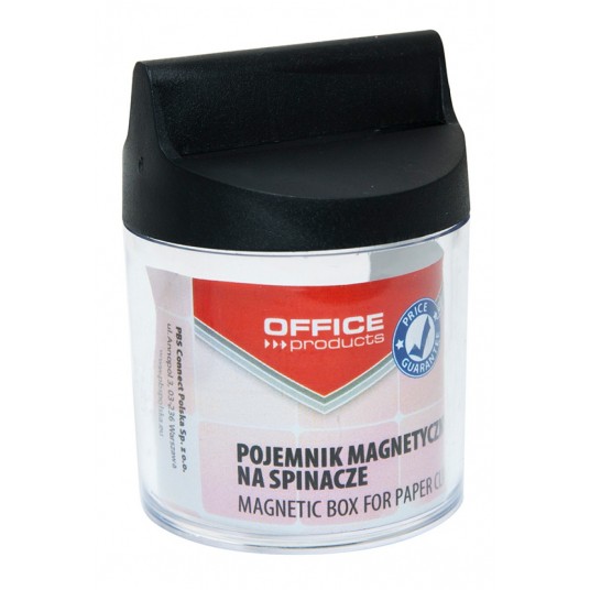 - Wykonany z przezroczystego tworzywa sztucznego okrągły pojemnik z magnetycznym czarnym wieczkiem - Sprzedawany bez spinaczy - Przeznaczony do przechowywania spinaczy biurowych o różnych rozmiarach - Etykieta produktowa włożona do środka produktu (bez klejenia) nazwą marki, kodem produktu i kodem ean - Indywidualnie foliowany - Pojemnik wykonany z tworzywa sztucznego (polistyrenu) - Kolor: transparentny