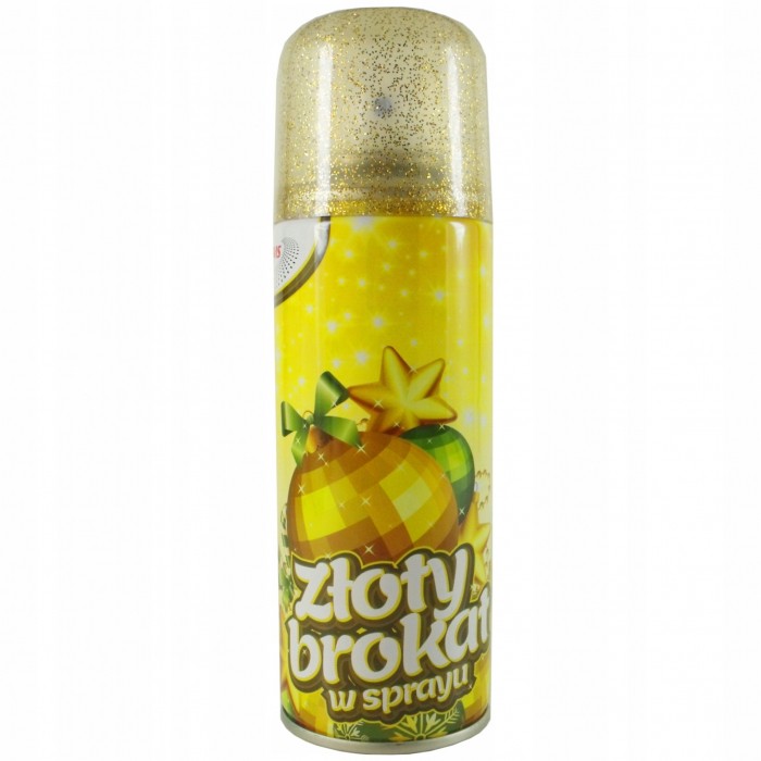 - Brokat przeznaczony jest do dekoracji prac plastycznych, ozdób świątecznych, papieru, do ozdabiania rysunków, malowideł, do dekoracji przedmiotów z gliny i masy solnej - Brokat w sprayu, który można użyć do dekorowania przedmiotów z papieru, tektury, gipsu, metalu itp. - Zawiera lśniące, złote drobinki - Pojemność 250 ml