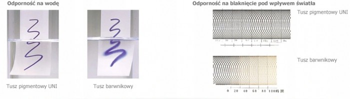 - Tusz pigmentowy, wodoodporny i odporny na blaknięcie