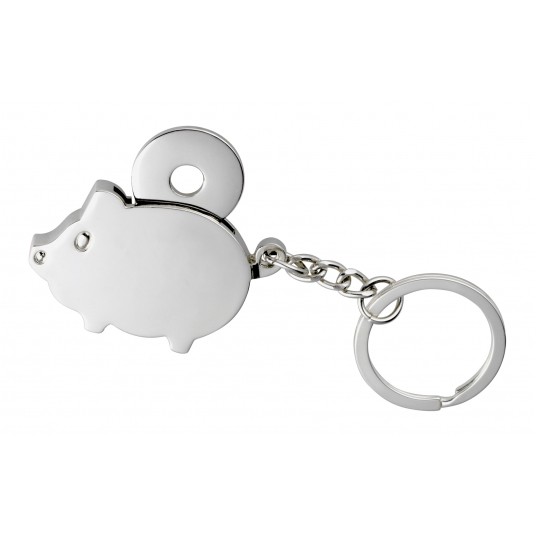 - metalowy brelok CHAMBA w kształcie świnki - z wbudowanym żetonem do wózka sklepowego - miejsce na Twoją reklamę na zawieszce i żetonie - rozmiar: 11 x 3,5 x 0,6 cm