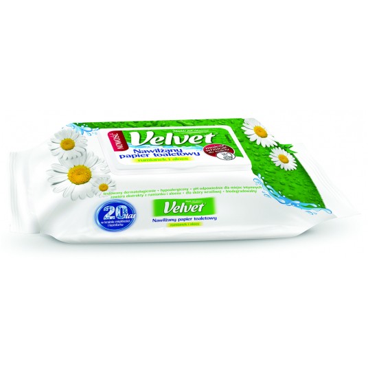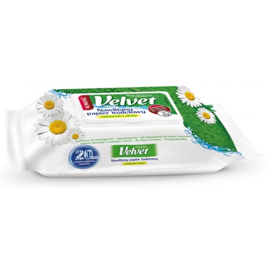 Papier toaletowy celulozowy Velvet rum&aloe, nawilżany, 42 listki, biały