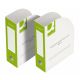 - wykonany jednostronnie z białej tektury o gramaturze 370gsm - typ fali: E - szerokość grzbietu: 100mm - pojemność: do 950 kartek o gramaturze 80gsm - pudełko mieści segregator lub jego zawartość - wyposażone w dwa otwory ułatwiające korzystanie - do wykorzystania również jako pojemnik na czasopisma lub ulotki - konstrukcja pudełka pomyślana z myślą o bezproblemowym rozłożeniu - produkt bezkwasowy (pH ok. 6,5) - kolor zielon