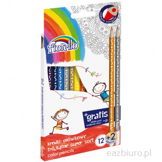 - Ostrzone - Przekrój trójkątny - Długość 17,8 cm - Lakierowane - Bardzo miękki grafit - Intensywne kolory - Praktyczne opakowanie - Po otwarciu wygodny dostęp do kredek - Każda kredka posiada nadruk i lakierowaną końcówkę - Zgodne z wymaganiami UE - Średnica grafitu 3 mm - 12 kolorów